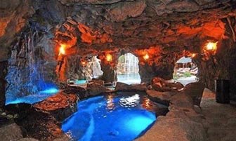 天津市團(tuán)泊湖室內(nèi)仿真玻璃鋼假山溫泉,效果逼真