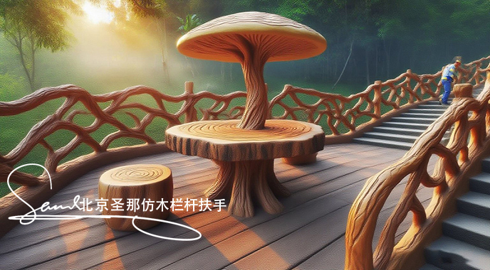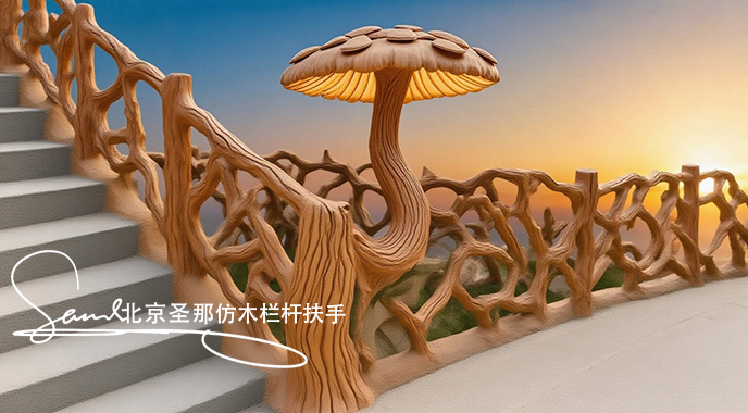 和天然樹木一樣的高仿真仿木欄桿,通過高仿真模具在工廠制成半成品,現場安裝固定。