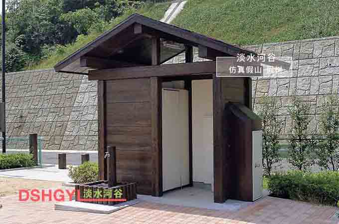 預制水泥仿木小屋制作的景區廁所大特點是美觀