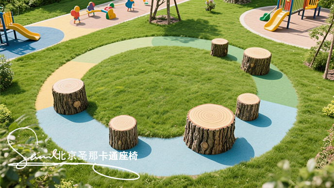 雙半圓木水泥仿木坐凳使用舒適外觀具美感