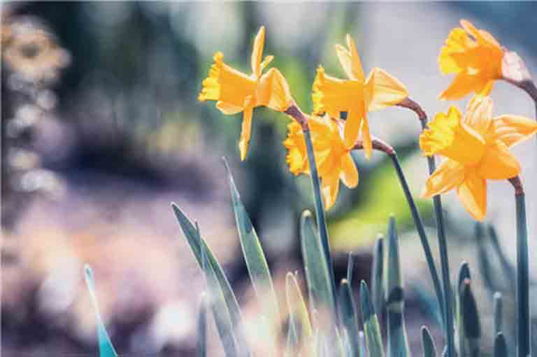 圖為:Narcissus ??Golden Harvest??,一種可愛的老式喇叭水仙花,它將照亮壁床后面的一個黑暗角落。