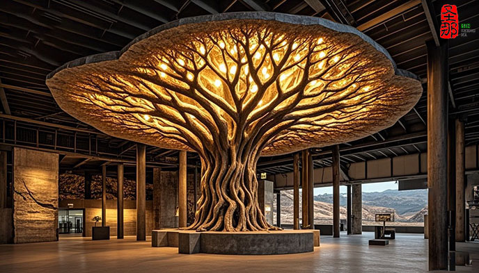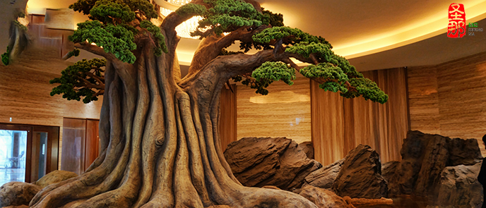 成都松和生態餐飲體驗館室內仿真榕樹制作