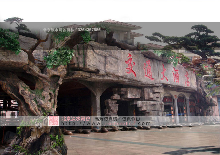 萬達集團各個項目地點的入口是供行人和車輛來往、通行的主要通道,設有主干道和人行橫道,我司將塑石假山主要定位于在道路的兩旁和頂部懸空的位置,同時假山內部可設置門衛室和電動伸縮門等。