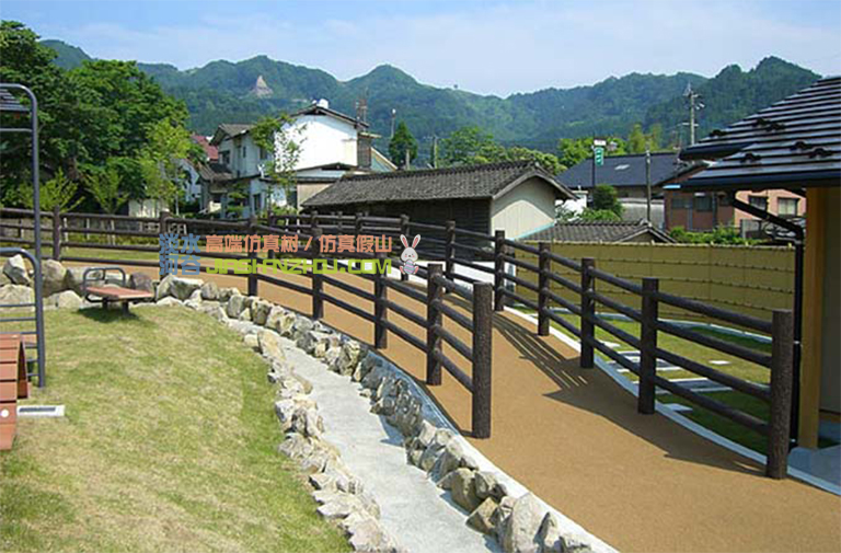 四段仿木圍欄-帶樹皮效果的仿木圍欄