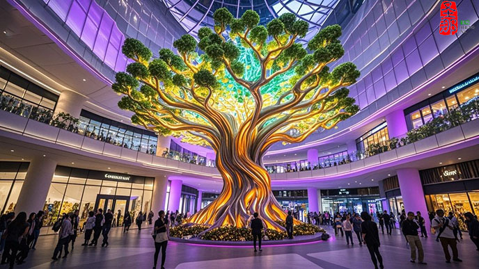 項目描述:豪華型仿真樹制作的制作方法是把眾多真樹的漂亮部分通過制作模具復制到一棵樹上,整體樹枝樹杈都用樹脂制作,使整棵樹的制作材料統一,手感、外觀一致。