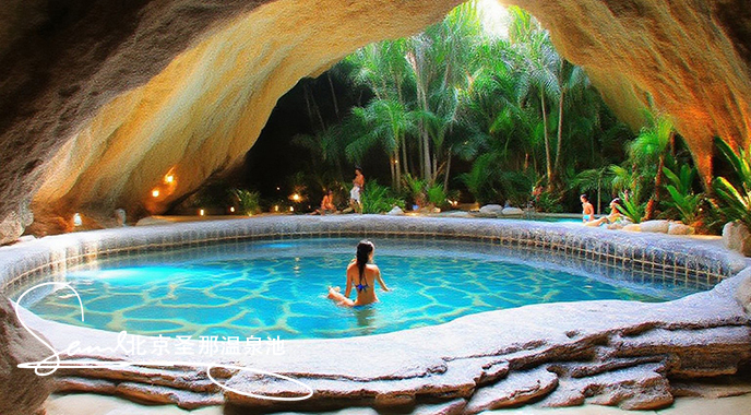 塑石假山溫泉池重現(xiàn)了洞穴的粗糙質(zhì)感