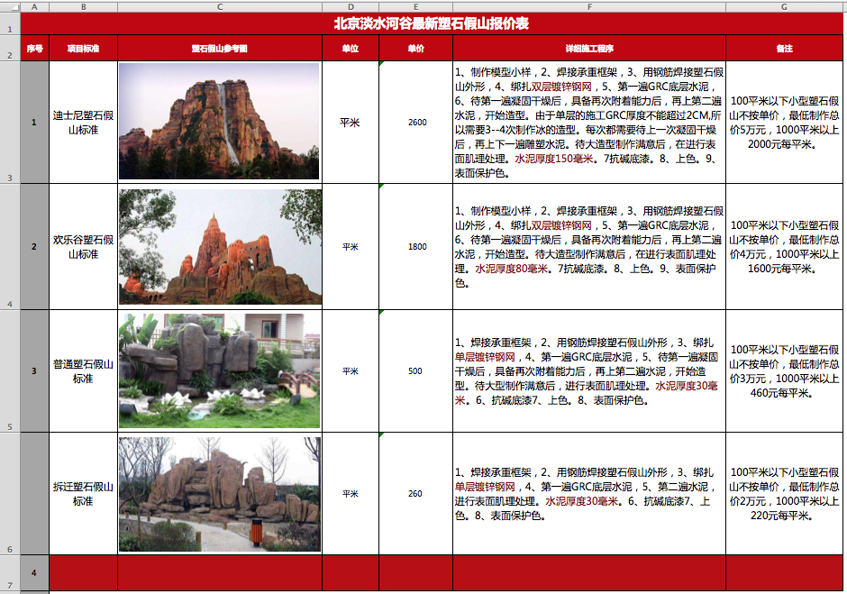 新塑石假山價格表-按制作等級-北京廠家
